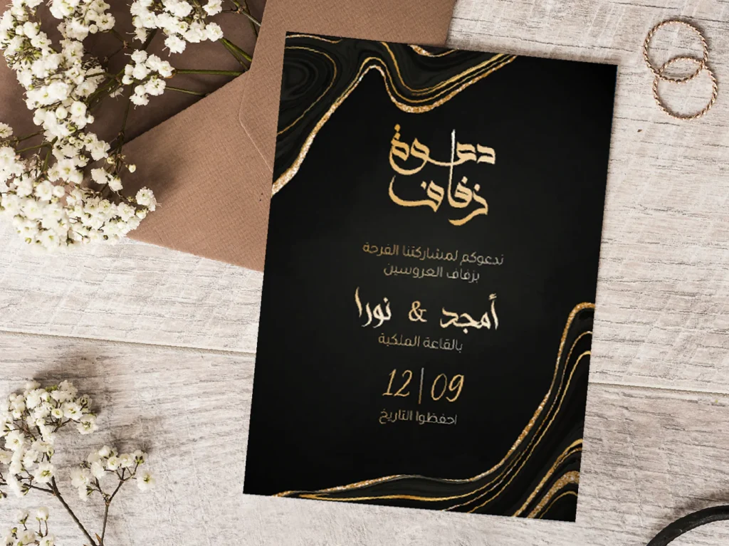 طباعة كروت أفراح مخصصة بتصميمات أنيقة وجودة عالية لتناسب ذوقك، مع إمكانية تخصيص الألوان والأنماط بما يتناسب مع مناسبتك.