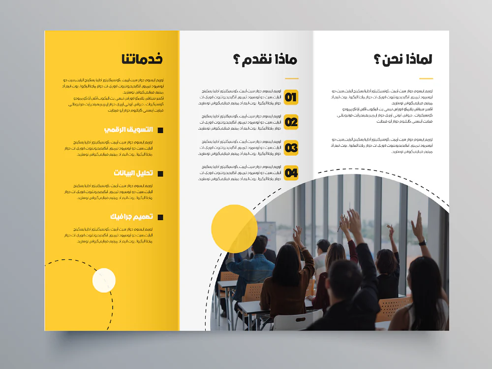 بروشورات إعلانية لعرض منتجاتك أو خدماتك، بتصميم جذاب وجودة طباعة عالية لتسويق فعال.